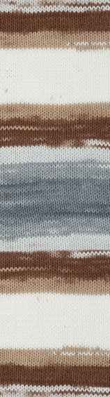 Alize Diva Batik – пряжа из акриловой микрофибры. Искусственные волокна имеют деликатный блеск, так что полотно получается немного похожим на шелк. Это моточные нитки для вязания спицами 2,5 – 3,5 или крючком 1 – 3. Они имеют равномерную толщину, изделия из них получаются аккуратными, ровными, не деформируются. Можно вывязывать даже сложные ажуры или рельефные узоры.