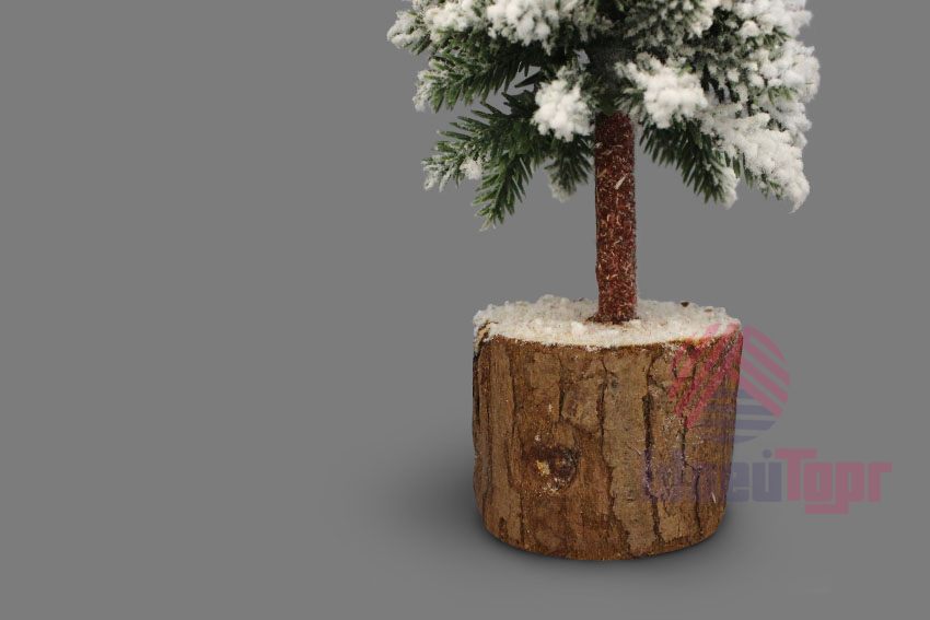 Создайте уютную зимнюю сказку с этой миниатюрной ёлочкой! Она щедро покрыта искусственным снегом, имеет высокую ножку и крепко установлена деревянный спил.