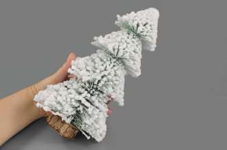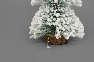 Создайте уютную зимнюю сказку с этой миниатюрной ёлочкой! Она щедро покрыта искрящимся искусственным снегом и установлена на натуральную подставку из спила дерева.