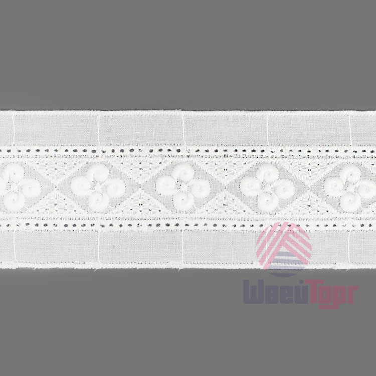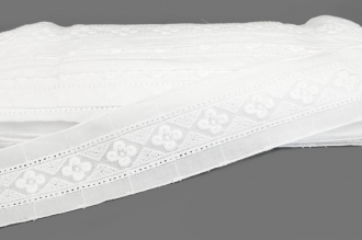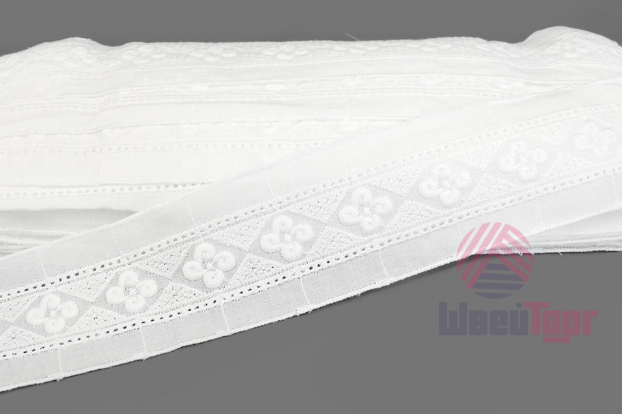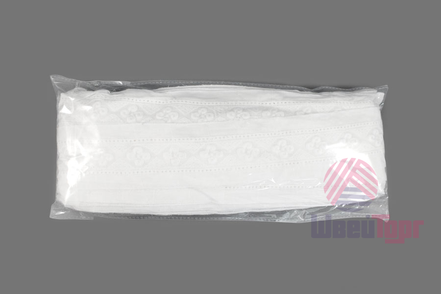 Прошва выполнена из мягкого хлопка с изящной машинной вышивкой и перфорациями. Создаёт эффект нежного кружева и приятна к телу.