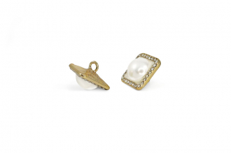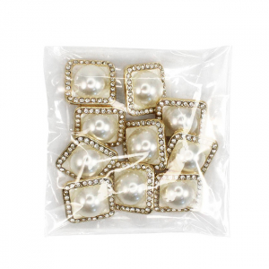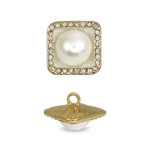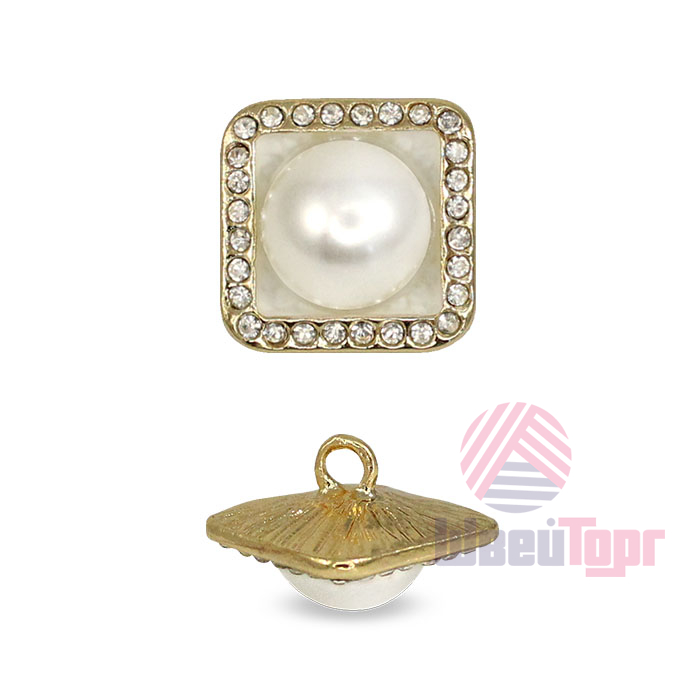 Элегантная пуговица квадратной формы с мягкими углами, станет изысканным акцентом вашего изделия. Её оригинальный дизайн сочетает в себе акцентную жемчужную бусину, обрамлённую тонкой полоской мелких страз, которые эффектно переливаются на свету. Размеры пуговицы: 16х16 мм.