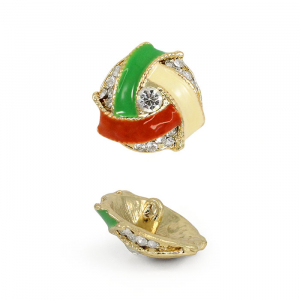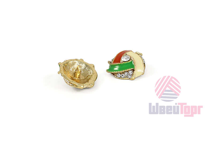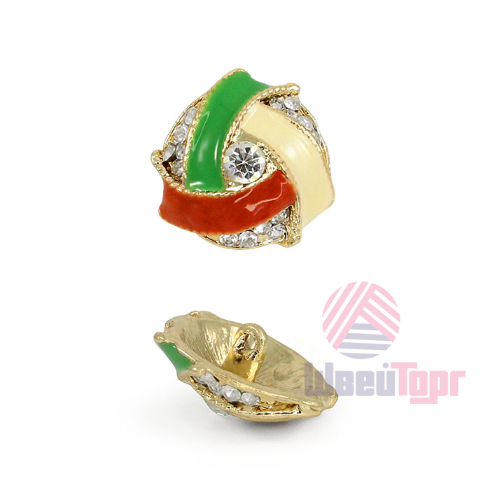 Эта элегантная пуговица станет изысканным акцентом вашего изделия. Её оригинальный дизайн сочетает в себе контрастные переплетающиеся элементы и множество искрящихся страз. Диаметр пуговицы: 2,2 см.