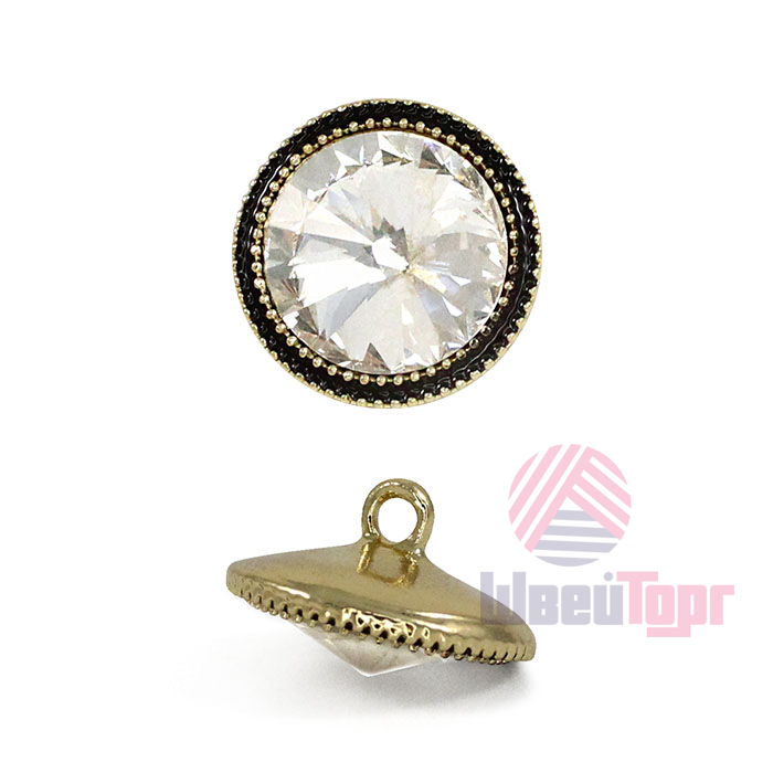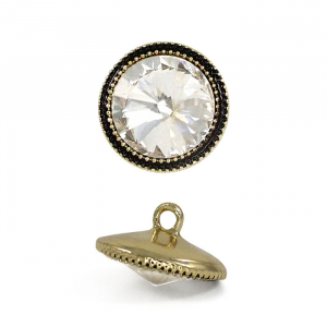 Элегантная пуговица, станет изысканным акцентом вашего изделия. Её оригинальный дизайн сочетает в себе акцентную центральную часть, в виде крупной гранёной бусины, которую обрамляет контрастный декоративный обод. Пуговица эффектно переливается на свету. Диаметр пуговицы: 2 см.