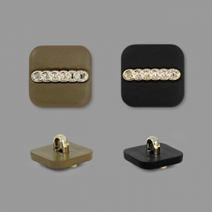 Пластиковая пуговица на ножке, имеет квадратную форму (размер 14х14 мм), станет отличным украшением для костюмов и жакетов.