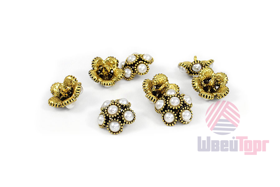 Пуговица №П-1048 28L (золото/перламутр) 1/20 шт