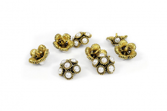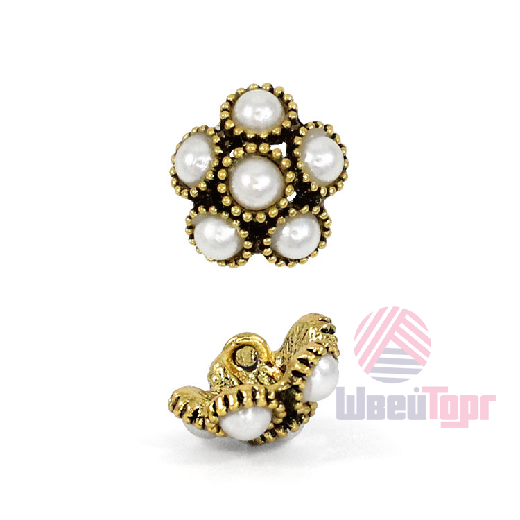 Эта металлическая пуговица на ножке станет изысканным акцентом для вашей одежды. У пуговицы оригинальный дизайн в виде цветка, где роль лепестков и сердцевины играют переливающиеся перламутровые бусины, смотрится необычно и утончённо. Качественная металлическая основа гарантирует прочность и долговечность, делая эту пуговицу идеальным выбором для жакетов и костюмов.