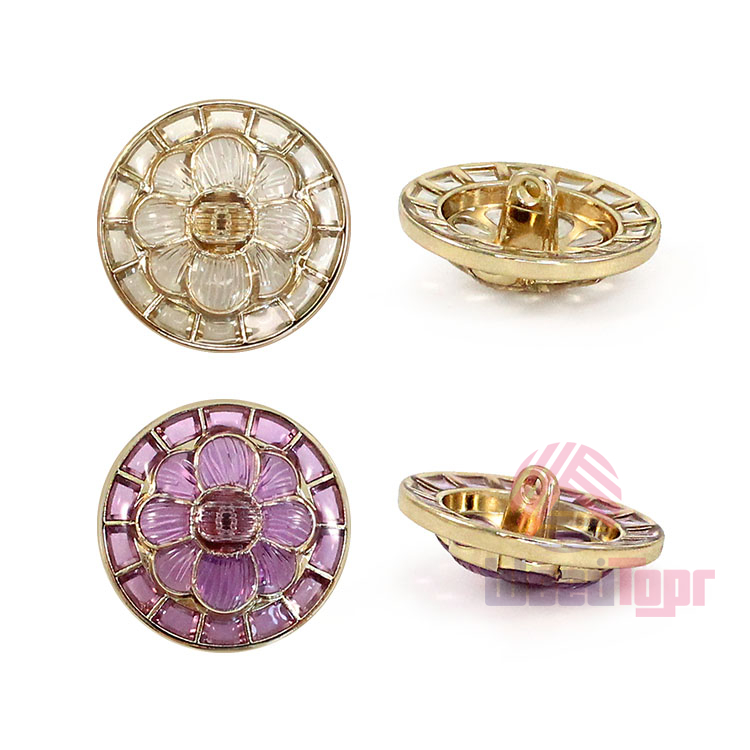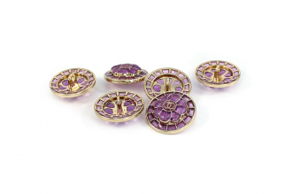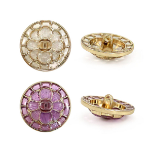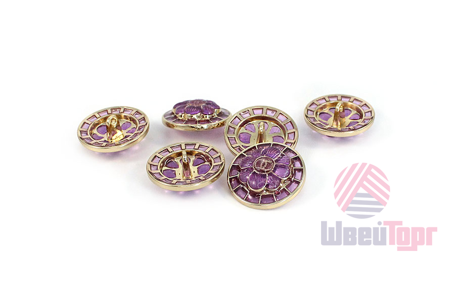 Украсьте изделие по-настоящему стильной и оригинальной пуговицей, которая непременно привлечёт внимание. В основе лежит прочный металлический каркас, декорированный накладным элементои в форме изящного цветка. Пуговица выполнена в сочетании металла с прозрачным акрилом нежных оттенков. Сочетание золотистой основы с полупрозрачным пурпурным или белым цветом создаёт утончённый и эффектный вид, добавляющий шарм любой вещи. Выберите свой вариант из двух цветовых комбинаций: белый с золотом или пурпурный с золотом.