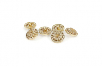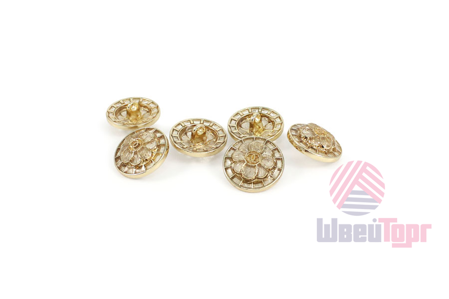 Стильная металлическая пуговица на ножке, имеет круглую форму (диаметр - 17 мм). Пуговица станет отличным украшением ваших костюмов и жакетов.