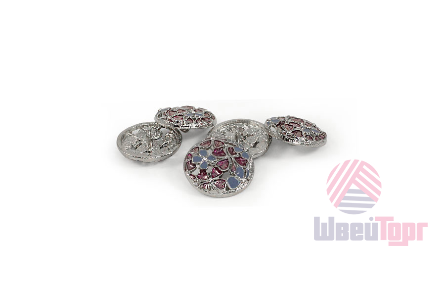Купить оптом Пуговица №П-1098 28L (серебро/голубой/пурпур) 1/15 шт в Нижнем Новгороде по цене 475 руб.