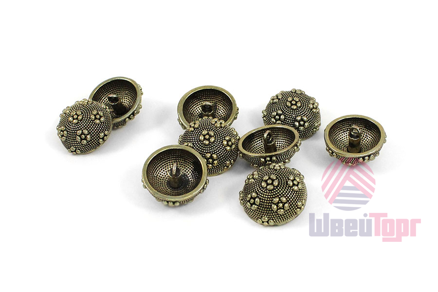 Пуговица доступна в двух цветах – чернённый и антик – оба варианта выгодно подчёркивают рельефную поверхность и добавляют пуговице нотку роскоши. Прочная ножка обеспечивает удобное пришивание, а необычный дизайн делает эту пуговицу настоящим акцентом в любом образе. Данные пуговицы прекрасно подойдут для ваших костюмов и жакетов.