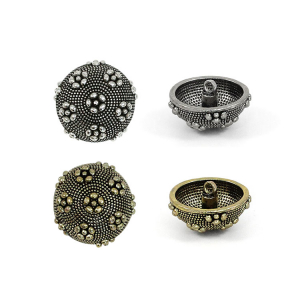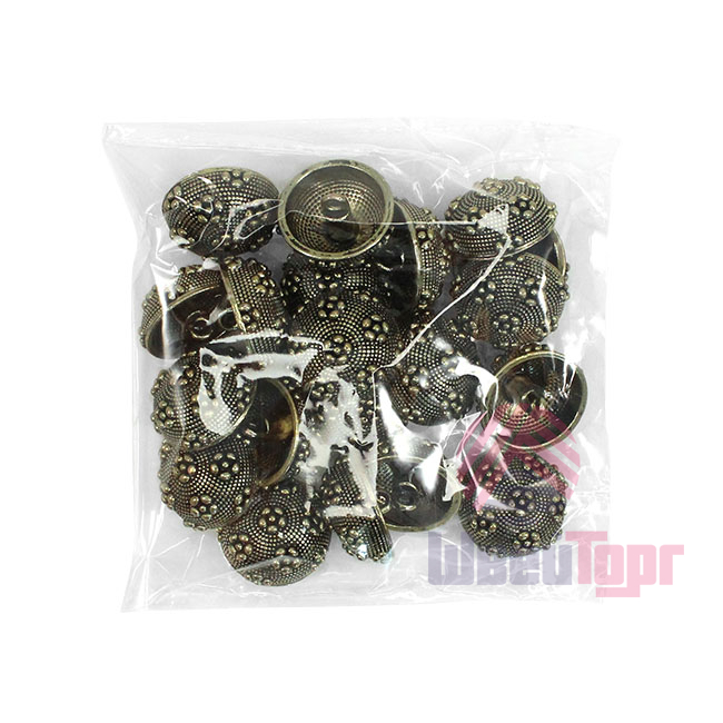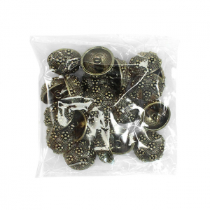 Пуговица доступна в двух цветах – чернённый и антик – оба варианта выгодно подчёркивают рельефную поверхность и добавляют пуговице нотку роскоши. Прочная ножка обеспечивает удобное пришивание, а необычный дизайн делает эту пуговицу настоящим акцентом в любом образе. Данные пуговицы прекрасно подойдут для ваших костюмов и жакетов.