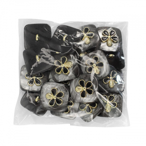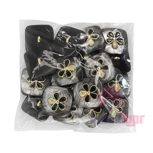 Пластиковая пуговица на ножке для создания милого и стильного образа. Пуговица имеет привлекательный дизайн – глянцевая, перламутровая основа с эффектом разводов, которую украшает объёмный металлический элемент, в центральной части, в виде цветка. Оригинальный элемент для яркого образа. Пуговица представлена в двух цветах: чёрный и нежный кремовый.
