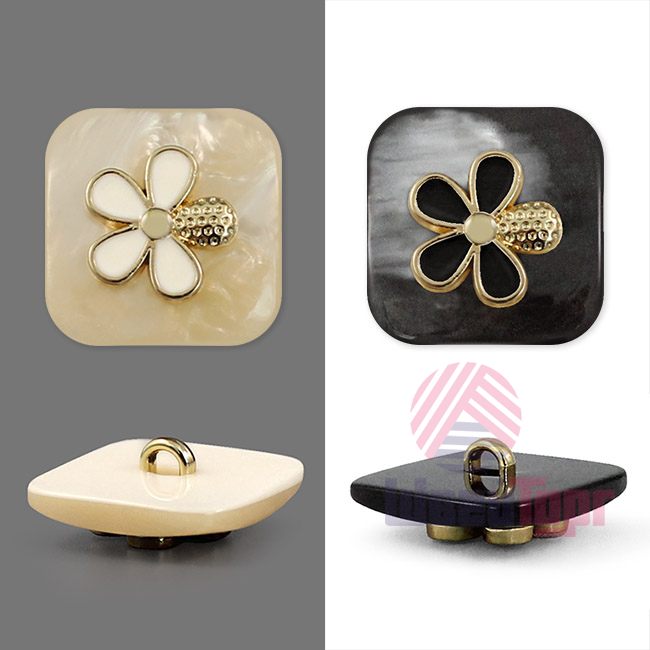 Пластиковая пуговица на ножке, имеет квадратную форму (размер 20х20 мм), станет отличным украшением для костюмов и жакетов.