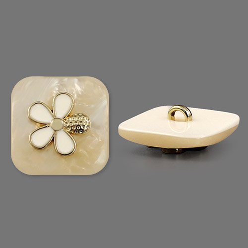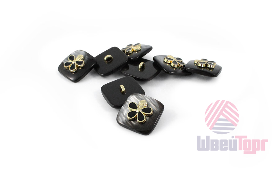 Пластиковая пуговица на ножке, имеет квадратную форму (размер 18х18 мм), станет отличным украшением для костюмов и жакетов.