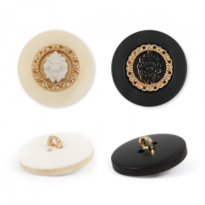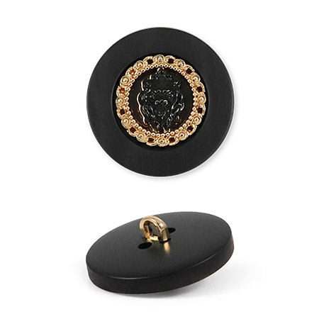 Эта пластиковая пуговица на ножке станет акцентной деталью для вашего костюма или жакета. Её оригинальный вид создаёт фактурная «рамка», окаймляющая центр, где расположился накладной элемент в виде головы льва.