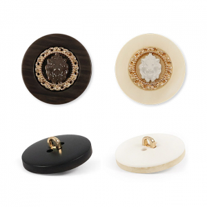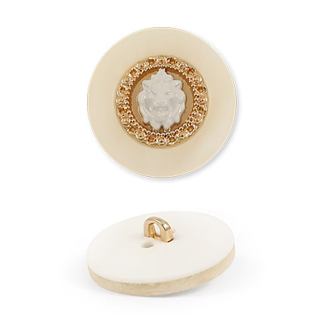 Эта пластиковая пуговица на ножке станет акцентной деталью для вашего костюма или жакета. Её оригинальный вид создаёт фактурная «рамка», окаймляющая центр, где расположился накладной элемент в виде головы льва.
