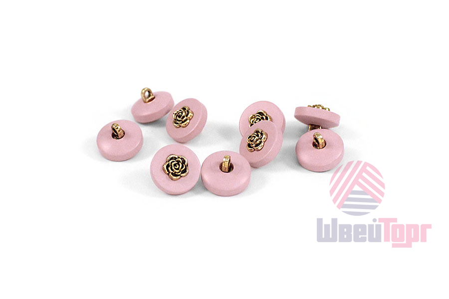 Пластиковая пуговица на ножке для создания милого и стильного образа. Пуговица имеет привлекательный дизайн – матовая минималистичная основа, которую украшает объёмный металлический элемент, в центральной части, в виде золотого цветка. Сдержанный и интересный элемент для оригинального образа. Пуговица представлена в трёх "вкусных" цветах: розовый, коричневый и кремовый.