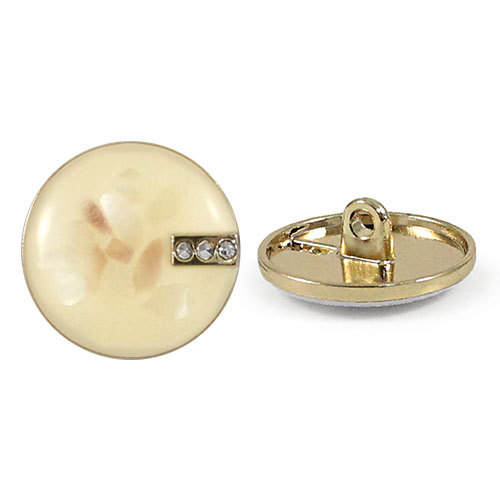 Пуговица на ножке для создания минималистичного и стильного образа. Пуговица собрана из двух частей – золотистая основа и лицевая часть, с интересным эффектом, словно мазки краски застыли под смолой. С лицевой стороны пуговицу украшает накладной элемент с мелкими стразами. Сдержанный и интересный элемент для оригинального образа.