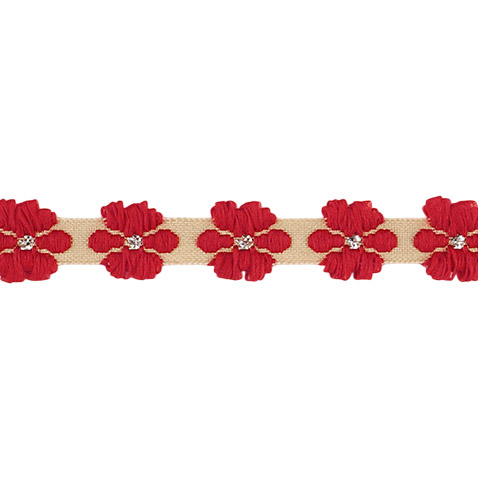 Доступно два варианта расцветки: с голубыми или с красными цветами. Тесьма односторонняя.