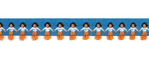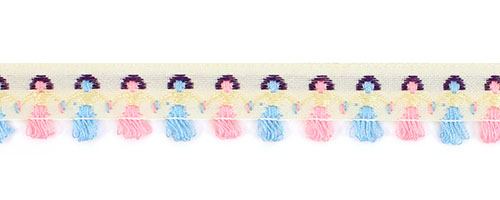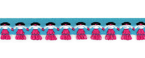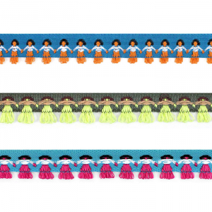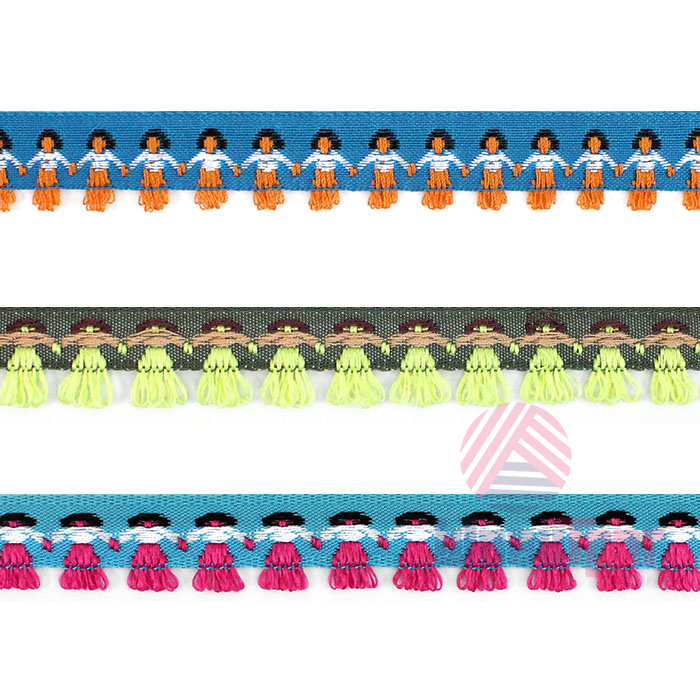 Данная тесьма с узором станет акцентной декоративной отделкой для разнообразных проектов, от скрапбукинга до пошива национальных и сценических костюмов. У тесьмы оригинальный дизайн в виде стилизованных фигурок, держащихся за ручки.