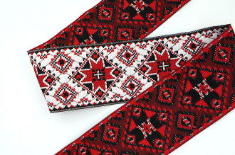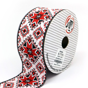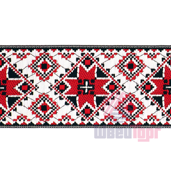 Данная жаккардовая тесьма обладает высокой прочностью, устойчива к растяжению и истиранию. Так как рисунок формируется непосредственно в процессе плетения, что придаёт тесьме эффект вышивки, тесьма сохраняет яркость цветов и не теряет своего внешнего вида долгое время. Рельефный узор тесьмы представляет собой геометрический орнамент. Благодаря высококачественному полиэстеру, из которого она изготовлена, тесьма сохраняет насыщенность цветов даже при частом использовании.