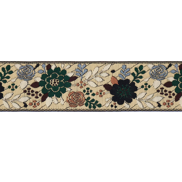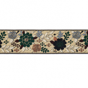 Данная жаккардовая тесьма обладает высокой прочностью, устойчива к растяжению и истиранию. Рисунок формируется непосредственно в процессе плетения, что придаёт тесьме эффект вышивки. Благодаря высококачественному полиэстеру тесьма сохраняет яркость цветов и не теряет своего внешнего вида долгое время.