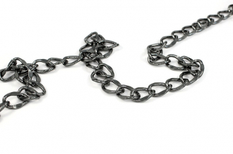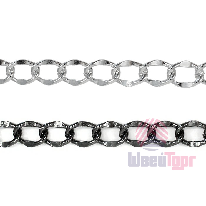 Металлическая цепочка, представлена в двух цветах: серебро и чернённый. Цепь состоит из крупных сегментов, слегка сплющенных по бокам. Прекрасно подходит для декора сумок, обуви, для создания бижутерии и других изделий ручной работы. Она выполнена из качественного металла, что гарантирует её прочность и долговечность, а отсутствие карабина позволяет легко адаптировать её под нужный размер или форму. Вы можете нарезать её на отрезки нужной длины, создавая украшения разных форматов.