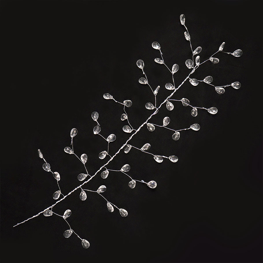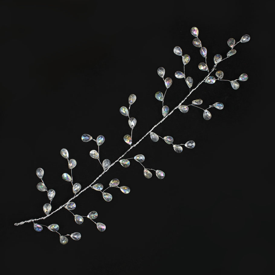 Декоративная ветка из серебристой проволоки с акриловыми бусинами в форме капли. Длина ветки - 30 см. Представлена в двух вариантах – прозрачный и прозрачный AB (перламутровый). За счёт проволоки, ветке можно с лёгкостью придать нужную форму и оригинально задекорировать новогодний венок или гирлянду, украсить новогоднюю ель или даже сервировочные салфетки.